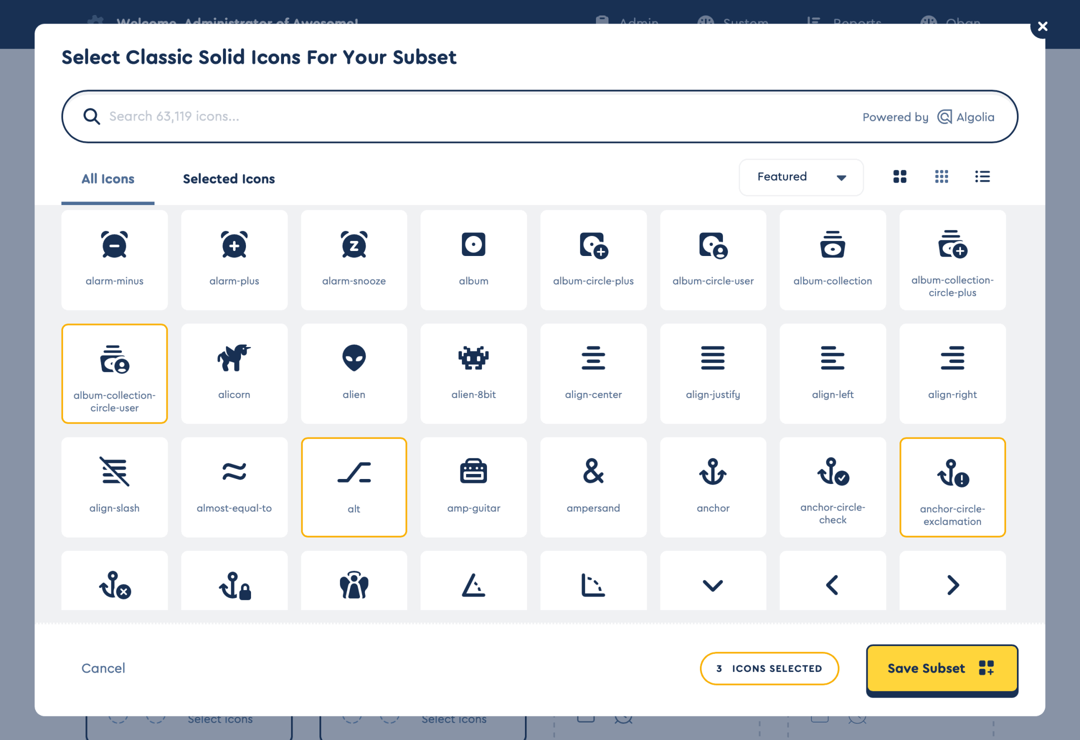 Next, use the Custom Subsetting option. Navigate to your Kit’s Icons tab and choose the specific icons you want to include. This allows you to fine-tune your icon selection to perfectly match your needs.
